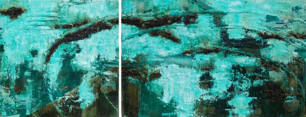 The diptych above is the first in this series of paintings and prints that will connect Poetry and Myth to the abstract. The title ‘Ys the last pagan’ refers to the Celtic Myth of ‘King Gradlon’ and his daughter ‘Dahut’. The poetry comes from the 7th century poem ‘Dreaming of the Rood’.